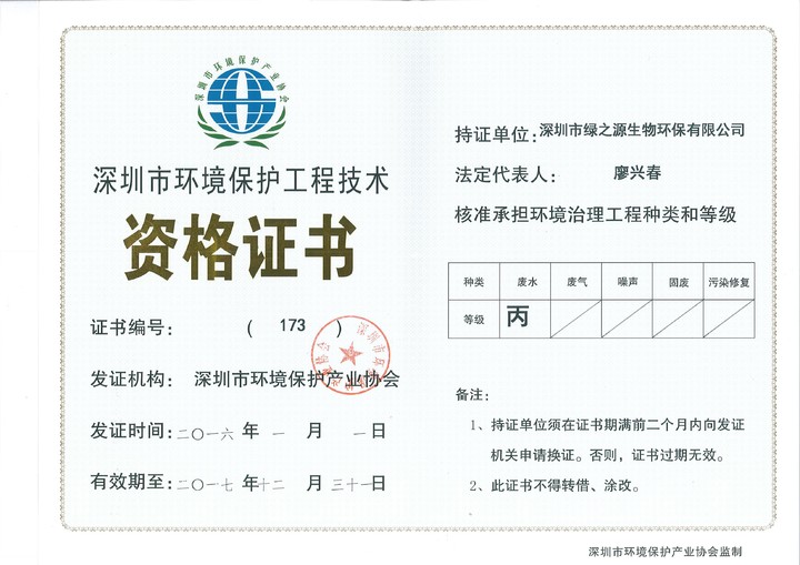 深圳市綠之源生物環(huán)保有限公司成立十余年,是經(jīng)深圳市環(huán)保局批準的具有專項環(huán)保工程設計資質的企業(yè),深圳市高新技術企業(yè)。公司從創(chuàng)立初期的水處理藥劑、水處理設備的研發(fā),逐步成長為環(huán)保類綜合性服務的企業(yè),目前年營業(yè)額約三千萬,集水處理藥劑研發(fā),工業(yè)廢水、廢氣及農(nóng)村生活污水處理等環(huán)保工程的設計、安裝、調試、運營、技術咨詢一條龍服務,為珠三角眾多企業(yè)服務,解決相關環(huán)保難題,并取得了良好的社會效益和環(huán)境效益。